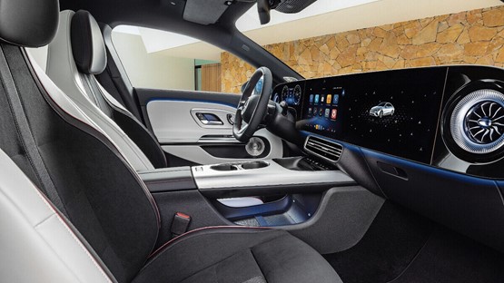 Angezeigt werden die Informationen des neuen Infotainmentsystems auf bis zu drei Bildschirmen. Hinzu kommt ein grossflächiges Head-up-Display, das die wichtigsten Informationen ins Sichtfeld des Fahrers projiziert. Auf dem optionalen Beifahrerdisplay kann ausserdem auf Streaming-Dienste wie Disney+ zugegriffen oder können, via kabellosen Bluetooth-Controller, Videospiele gespielt werden. Auf dem Hauptbildschirm für den Fahrer werden diese Dienste natürlich nur im Stand angezeigt.