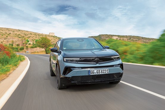 Auf Rallye-typischen Allradantrieb verzichtet Opel zwar, doch mit einer Motorleistung von 207 kW/281 PS und 345 Nm Drehmoment ist der frontgetriebene Mokka GSE genau gleich stark wie die tatsächliche Rallye-Version des Stromers. Ein Torsen-Sperrdifferenzial an der Vorderachse sorgt dafür, dass dem 4,15 Meter kurzen SUV nicht so bald die Traktion ausgeht, besonders beim Herausbeschleunigen aus Kurven. Mit einer Beschleunigung von 0 auf 100 km/h in 5,9 Sekunden sowie einem Topspeed von 200 km/h ist der zivile GSE das bisher schnellste vollelektrische Serienmodell von Opel – und damit hat diese Version doch einige Trümpfe im Ärmel.